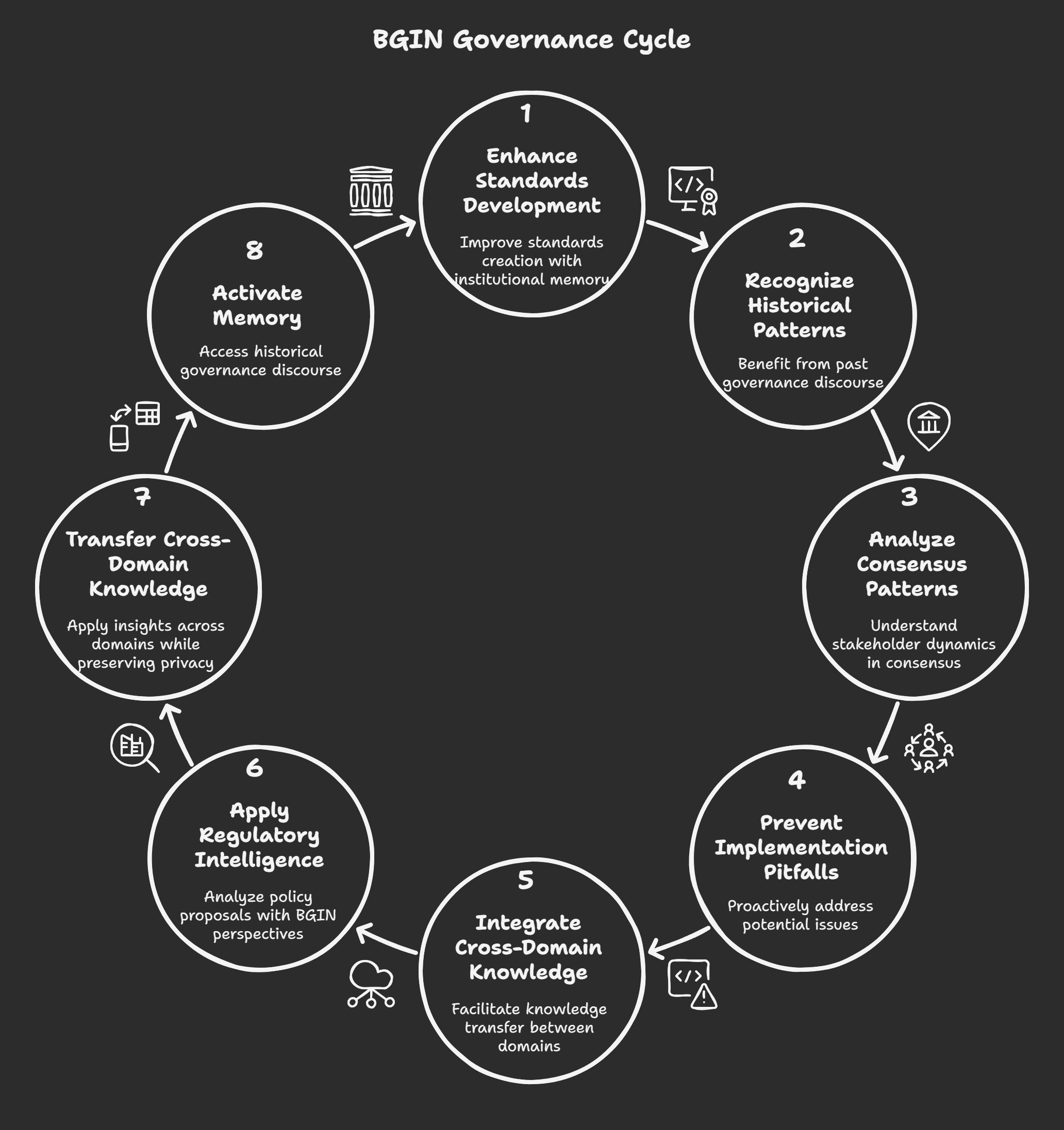 The BGIN Agentic Archive and Codex create an intelligence layer that makes governance processes more effective, accessible, and capable of addressing the accelerating pace of blockchain innovation while maintaining the careful stakeholder consideration that ensures sustainable governance outcomes.