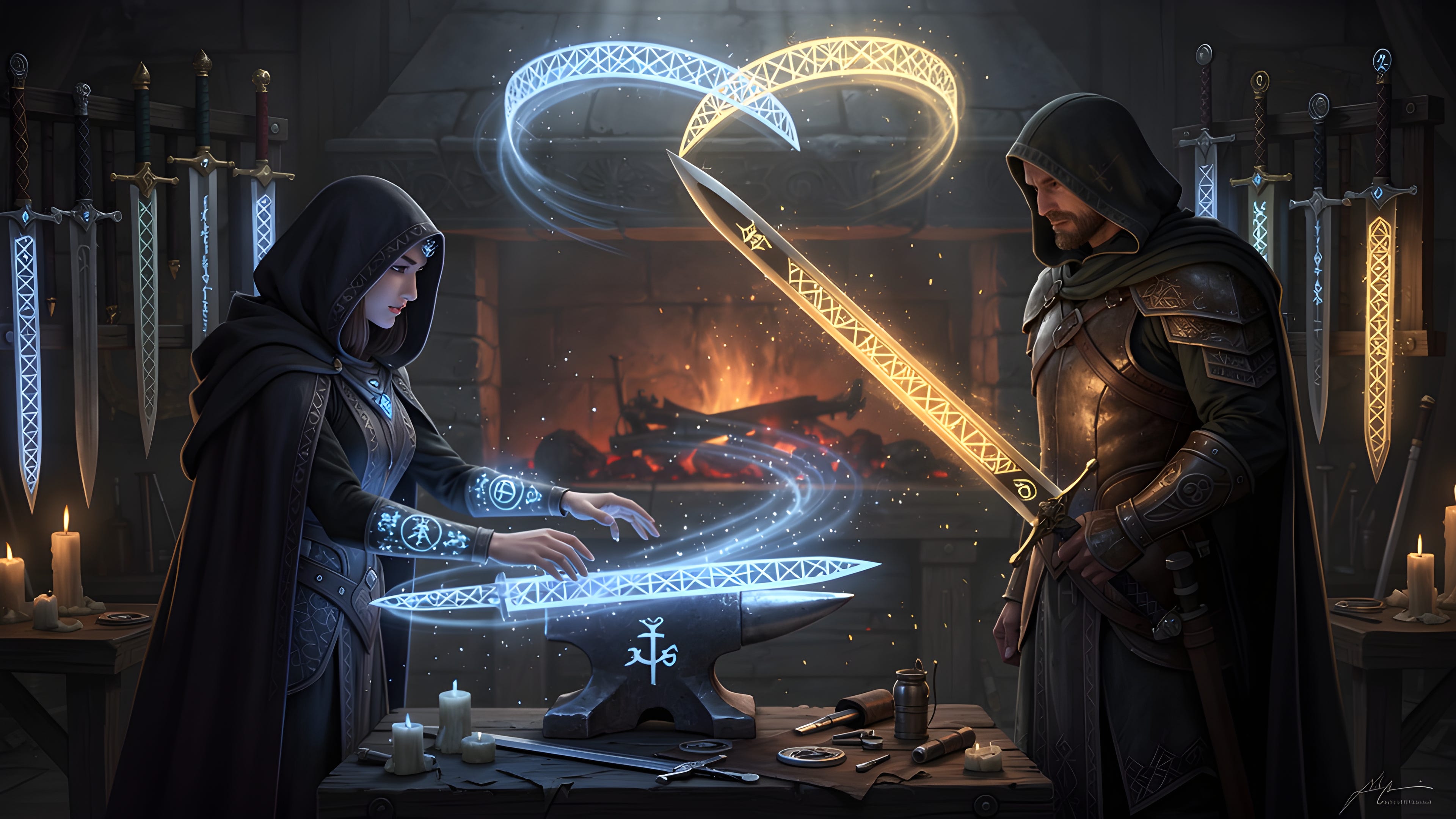 The sword attends. The spell returns. The forge burns. The ceremony crosses.
