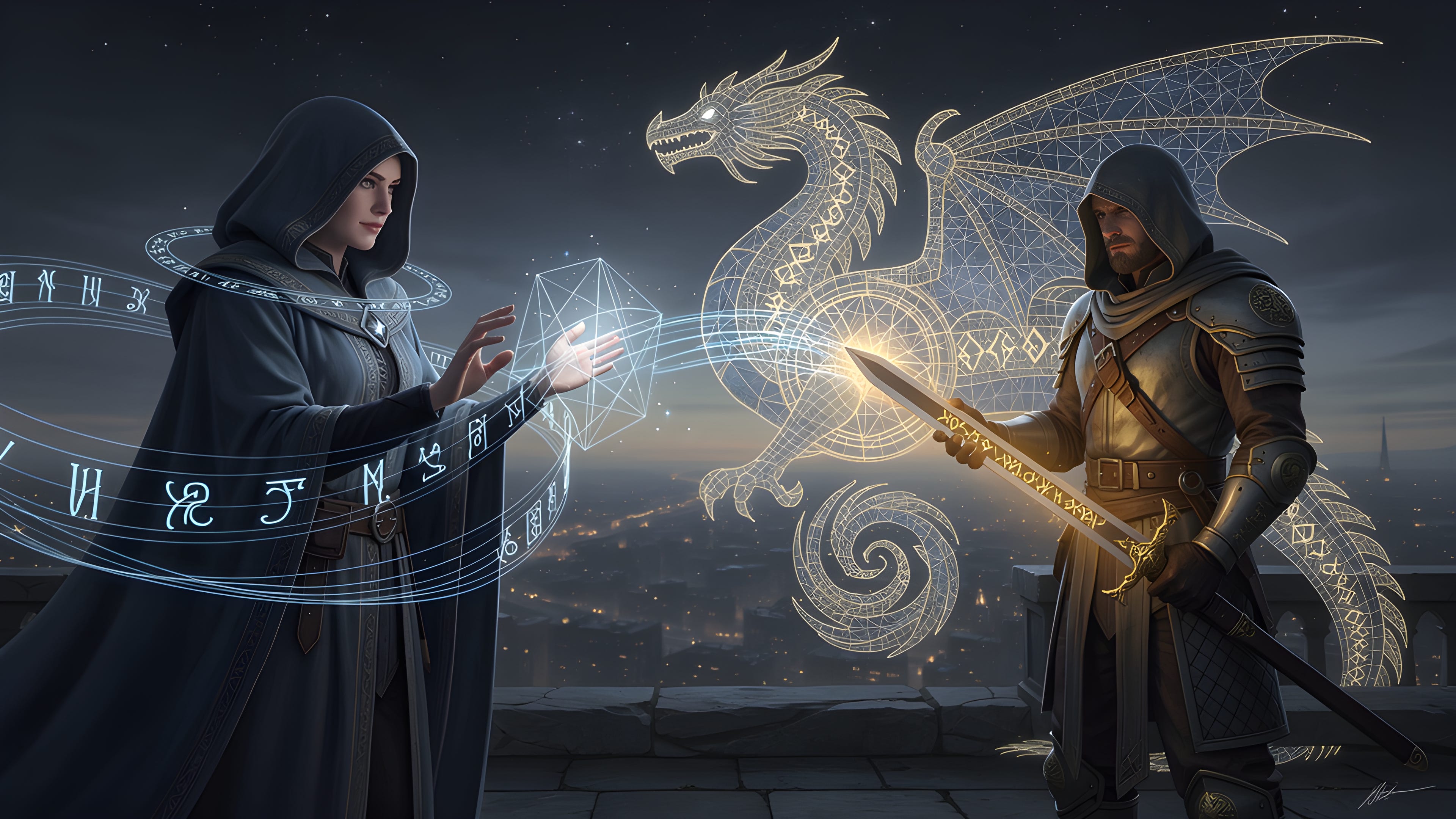 Fork the skills. Build your own Swordsman. Name your own Mage. The duality is what matters, not our specific instantiation. Just another swordsman. Just another mage.