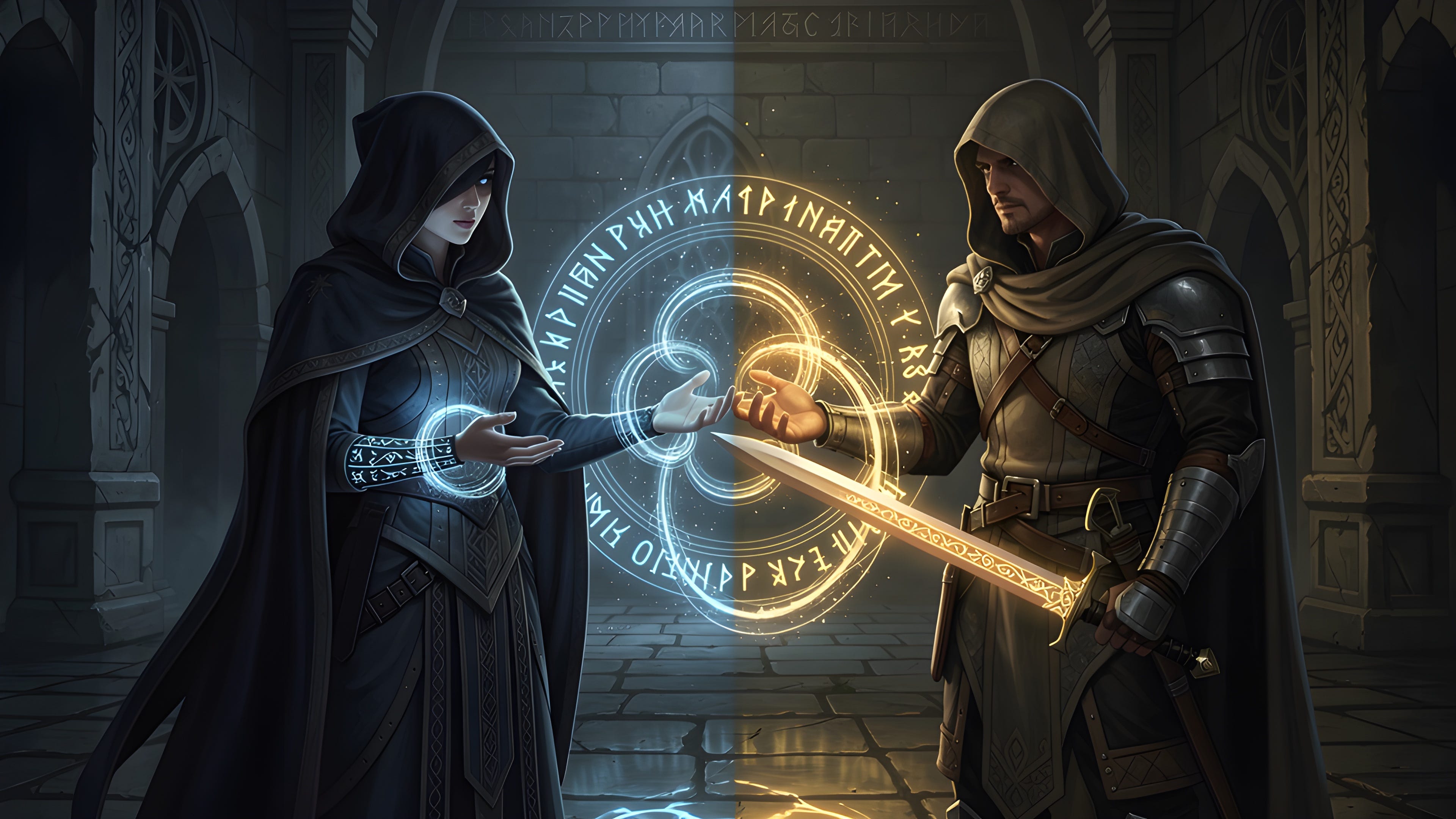Swordsman and Mage separated, with the Gap between them, preserve the First Person — as negation and complement composed yield the successor, so two involutions yield the sovereignty path.